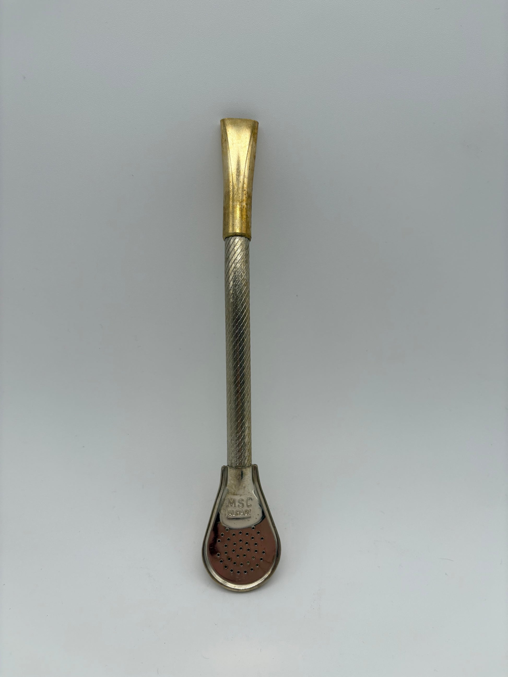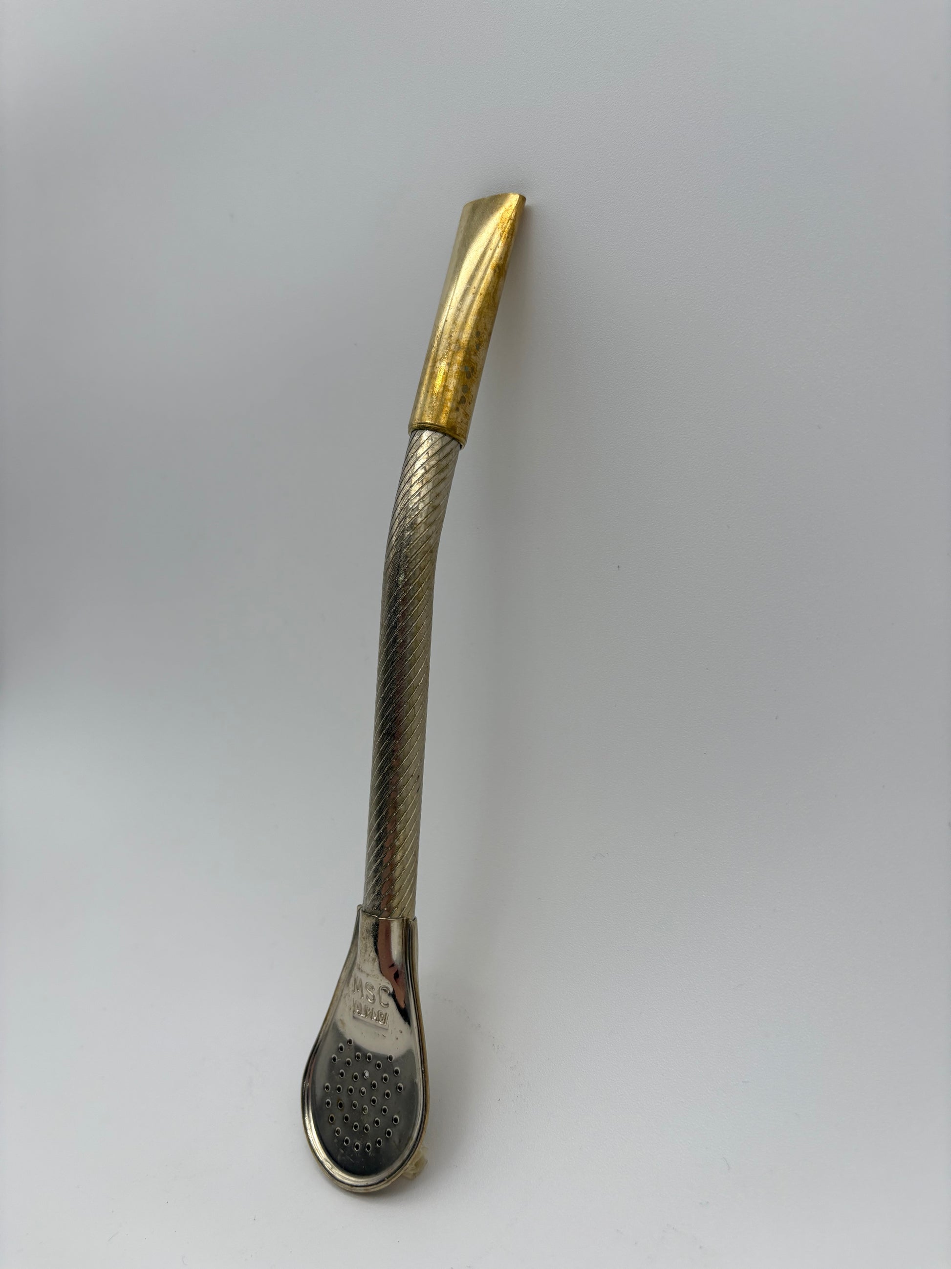Bombillon con caño cincelado de alpaca y pico en bronce.