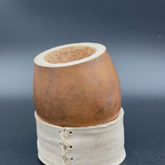 Coquito criollo, calabaza pulida con base de cuero crudo.