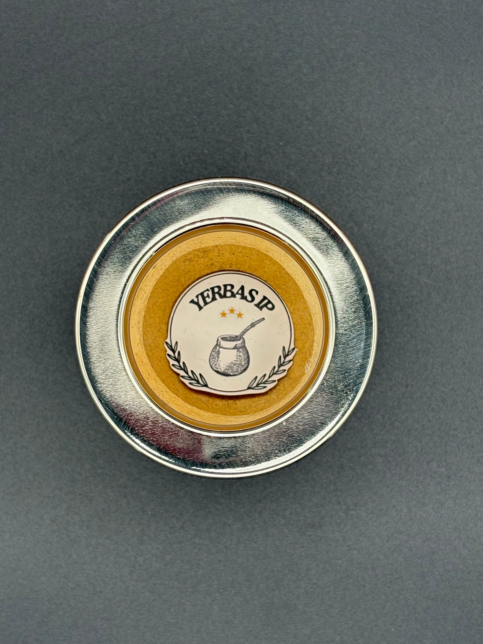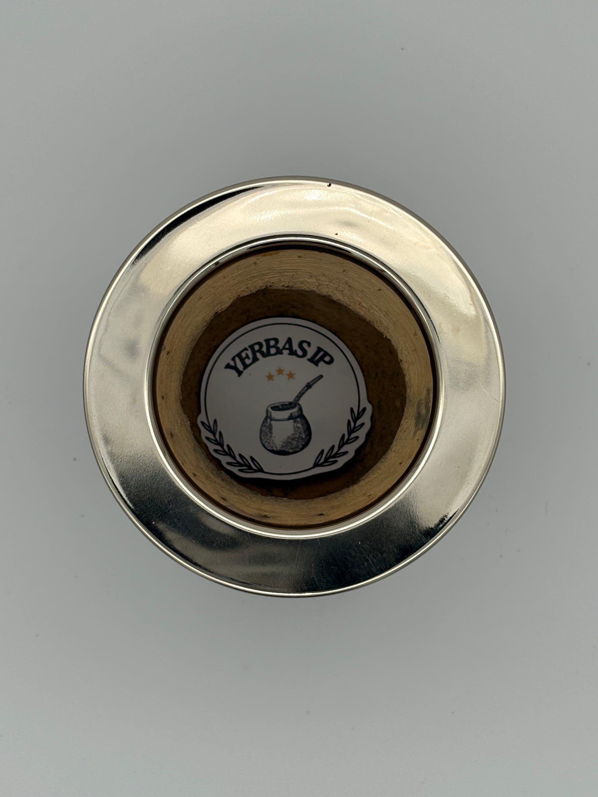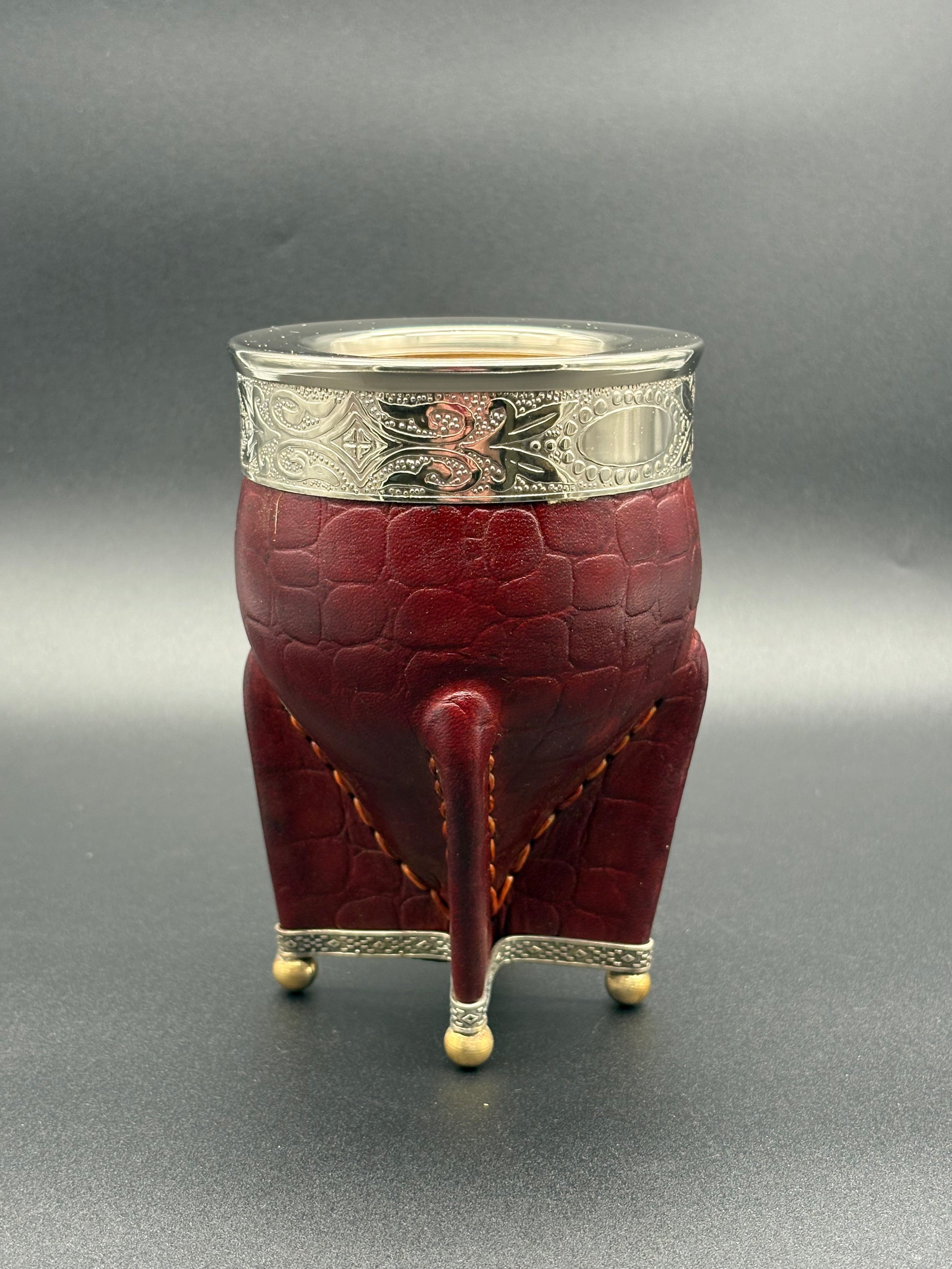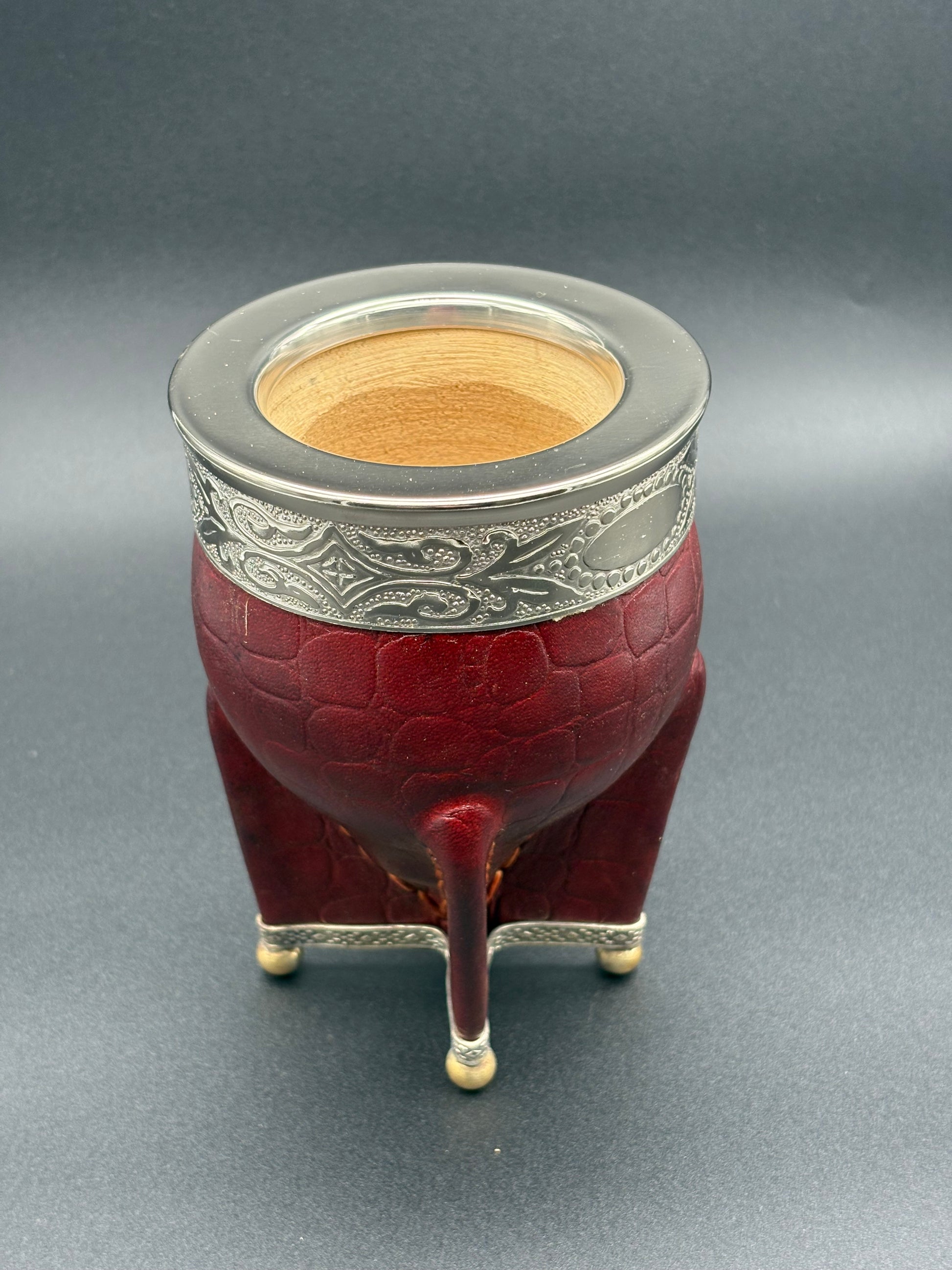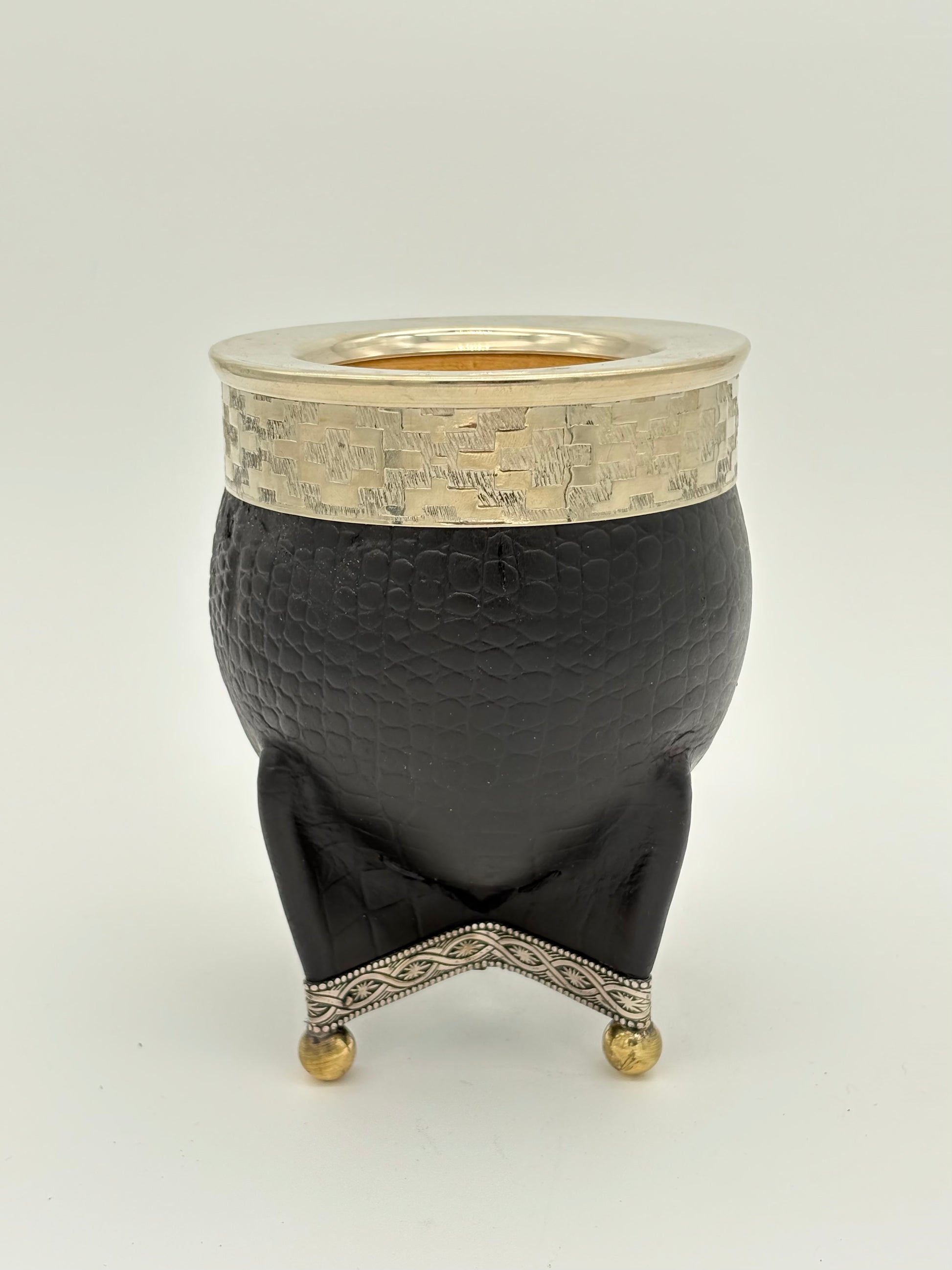 Imperial con interior de calabaza, cuero croco, virola y base de alpaca con bolitas en bronce.