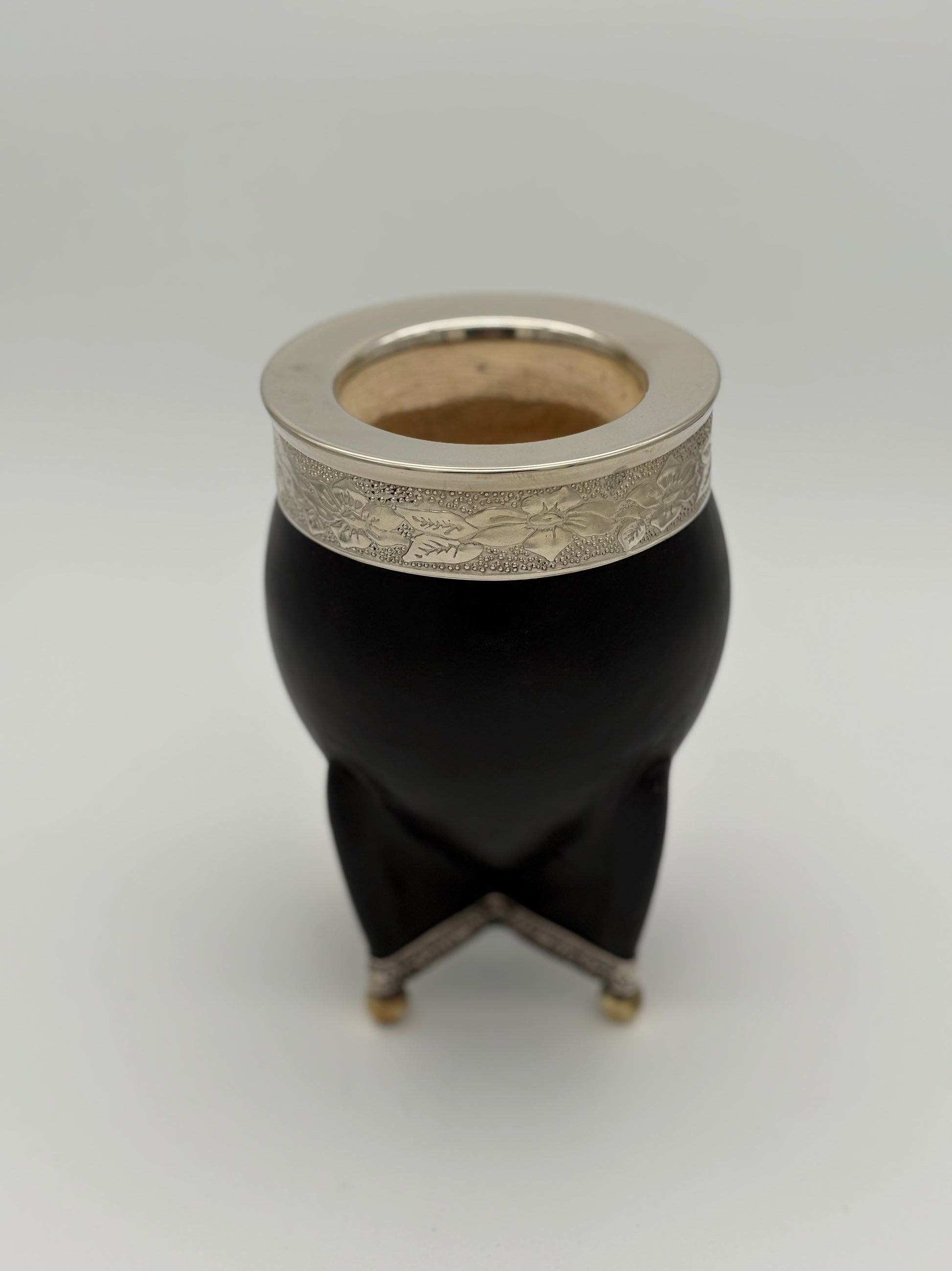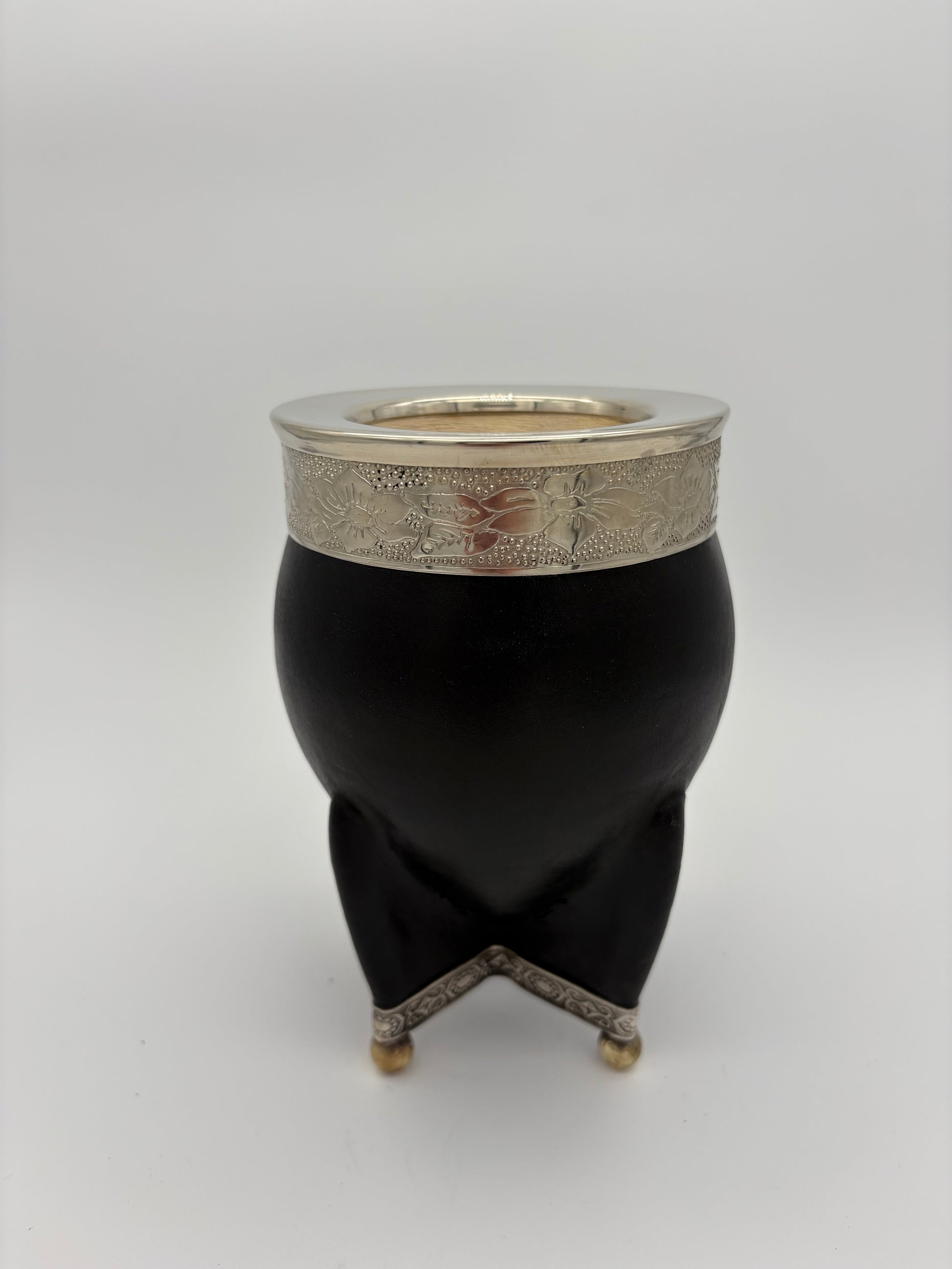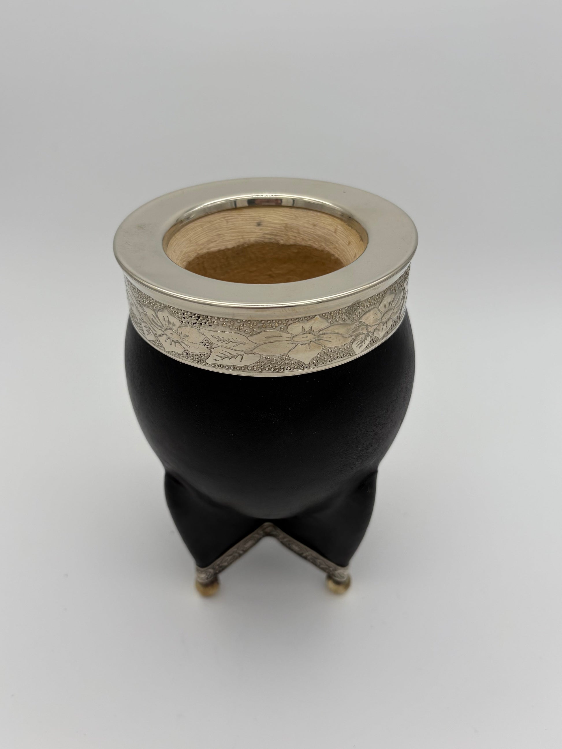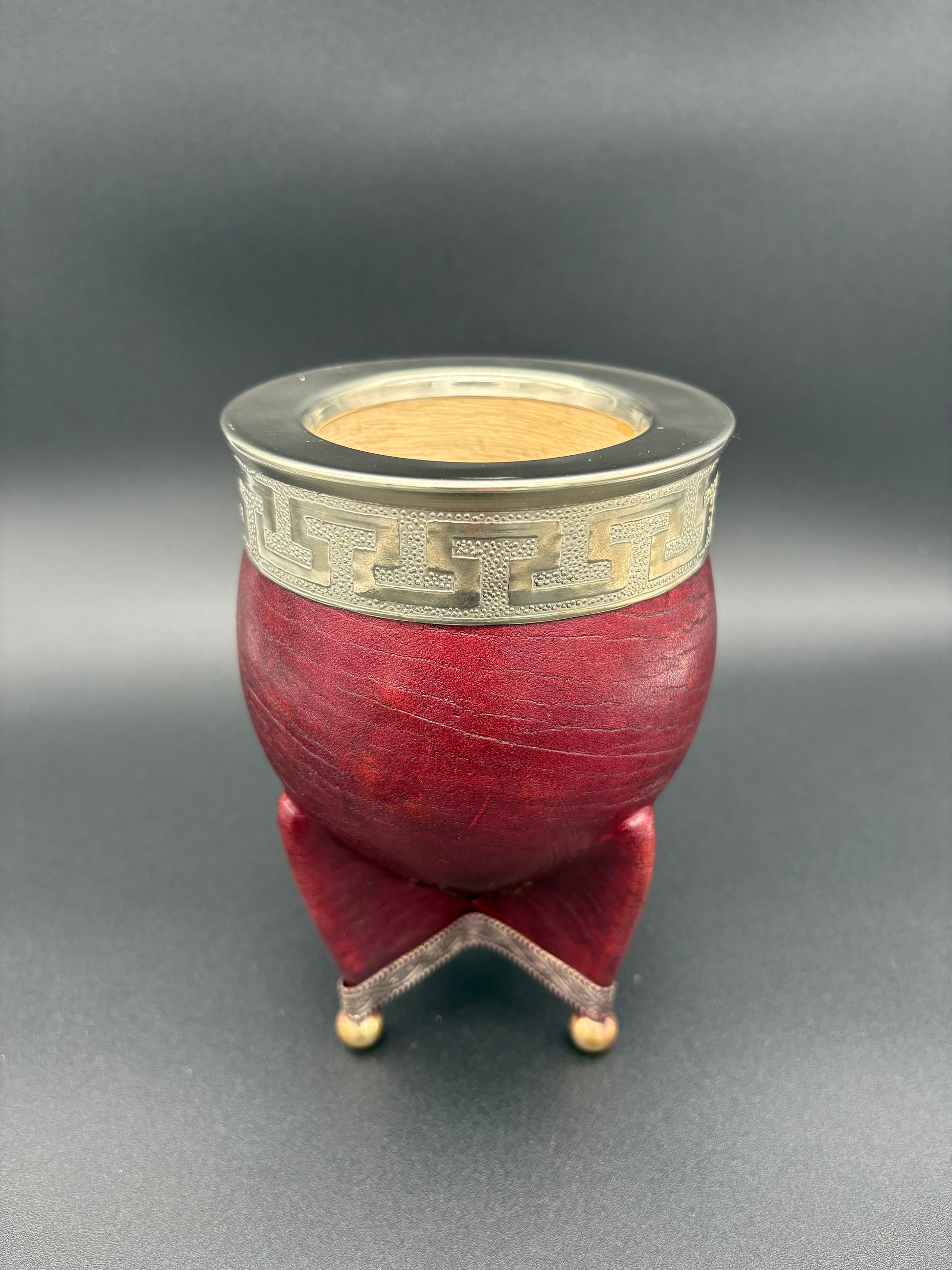 CUERO, INTERIOR DE CALABAZA, BASE DE ALPACA Y BOLITAS DE BRONCE