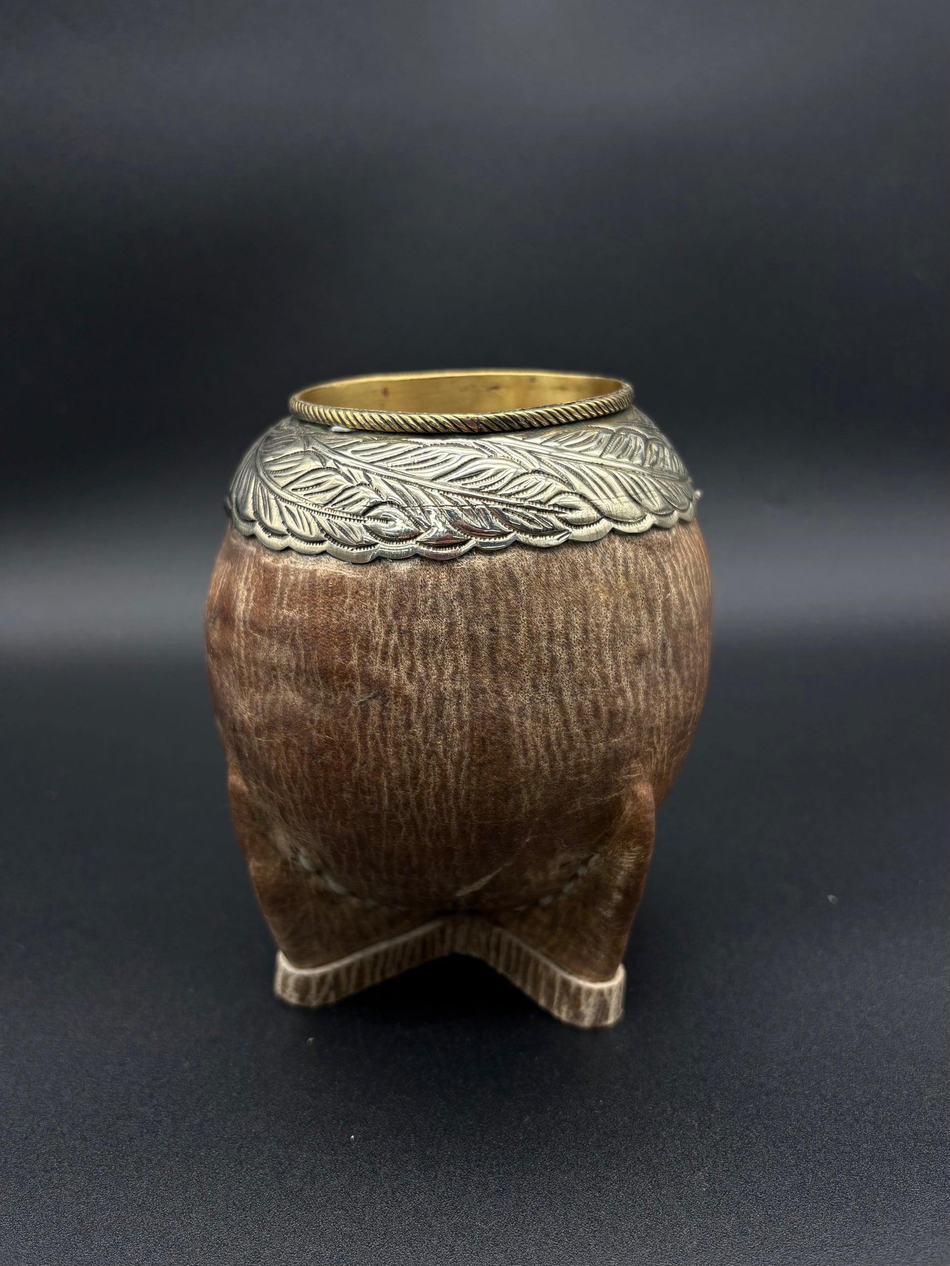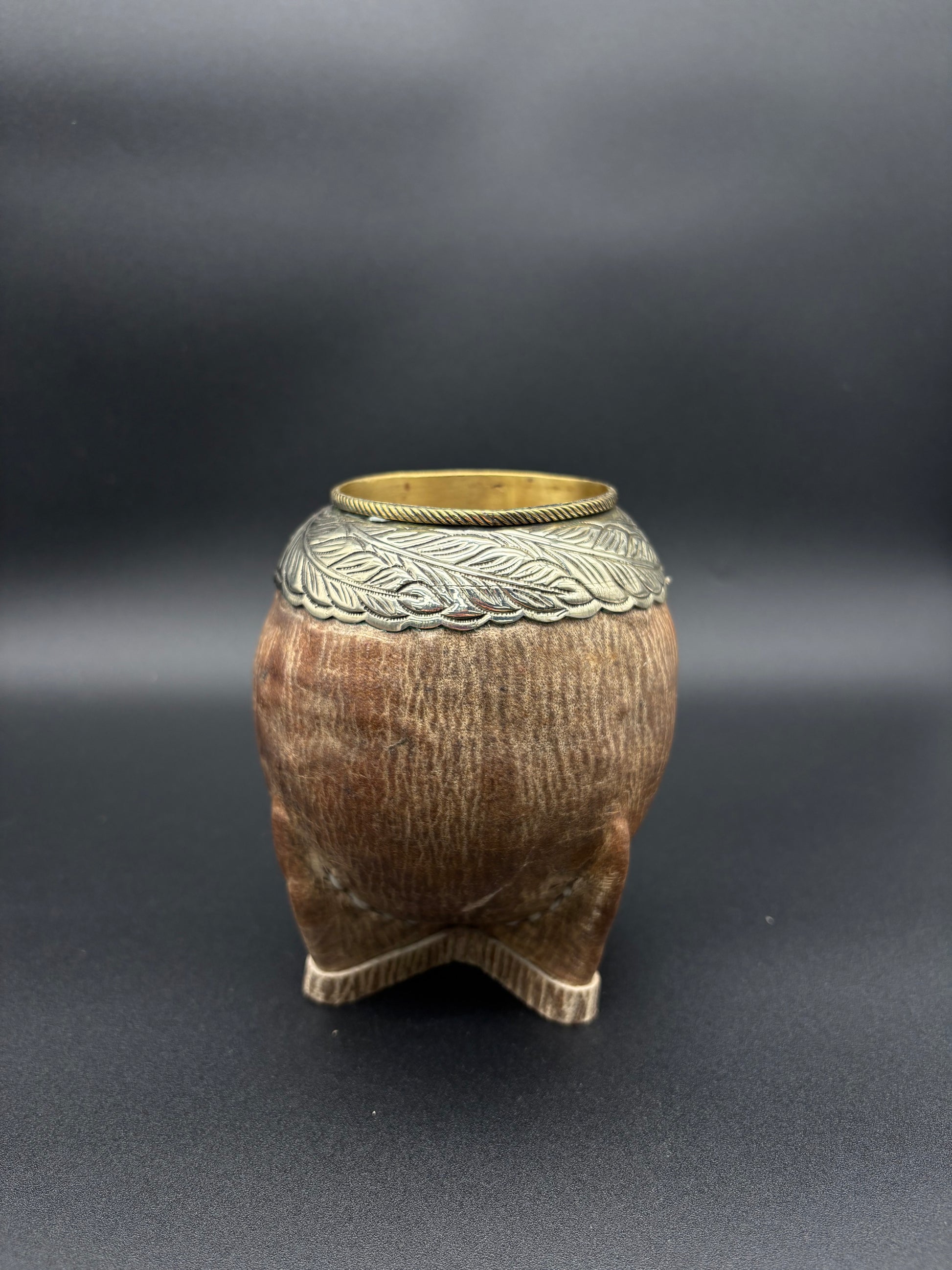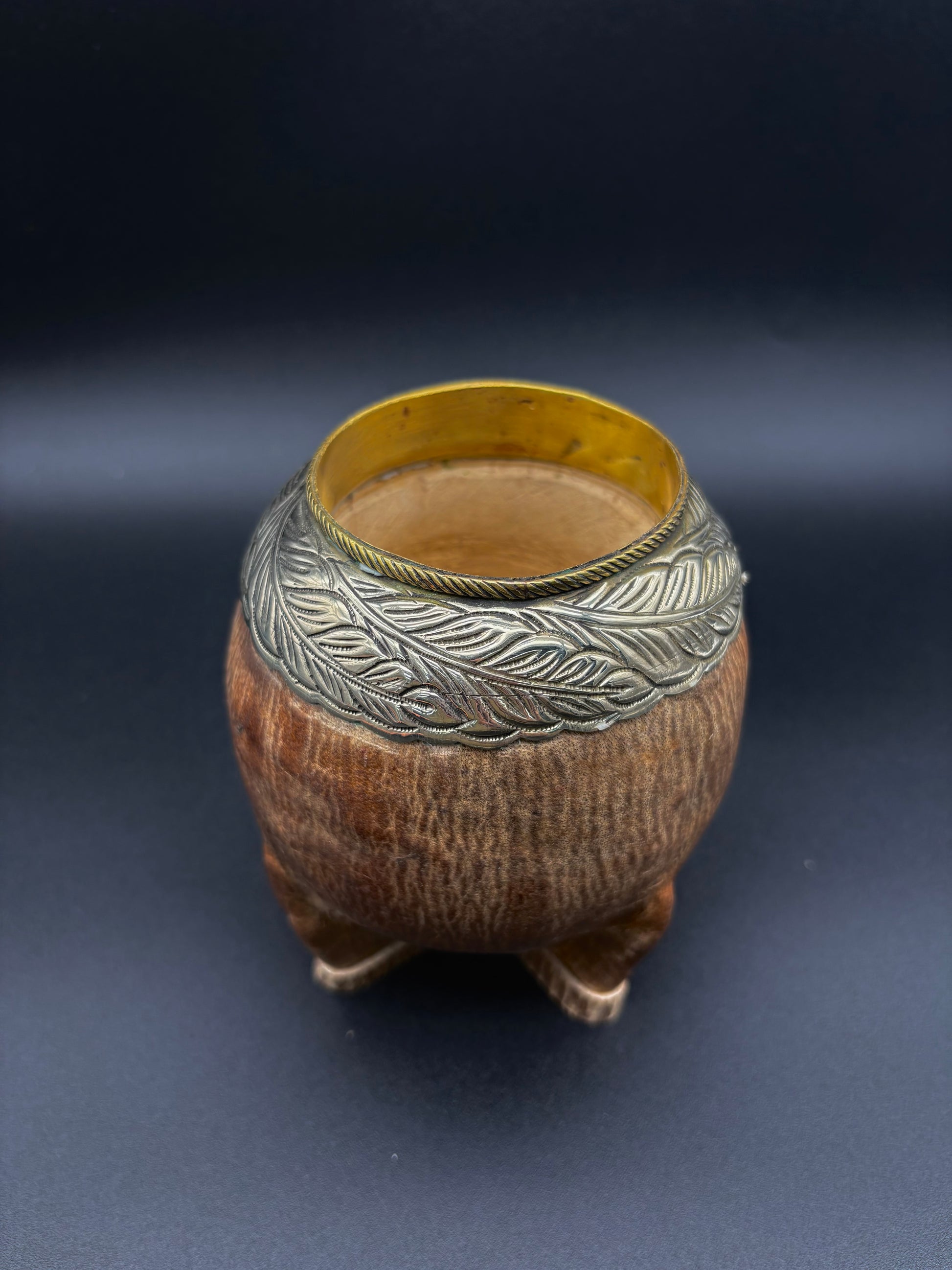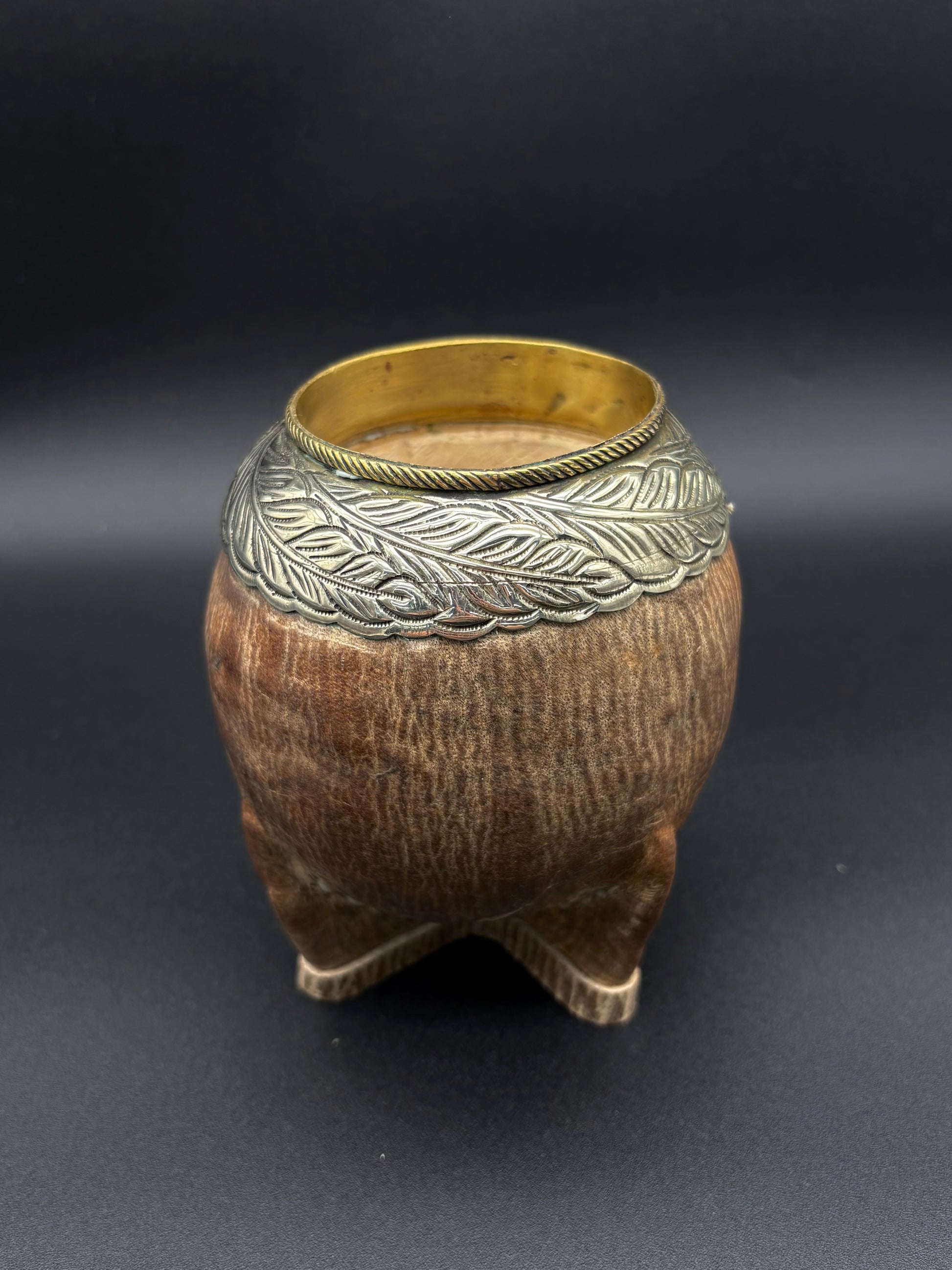 Calabaza Brasilera Seleccionada, Forrado en cuero crudo con virola cincelada al lacre y calada con aro en bronce.