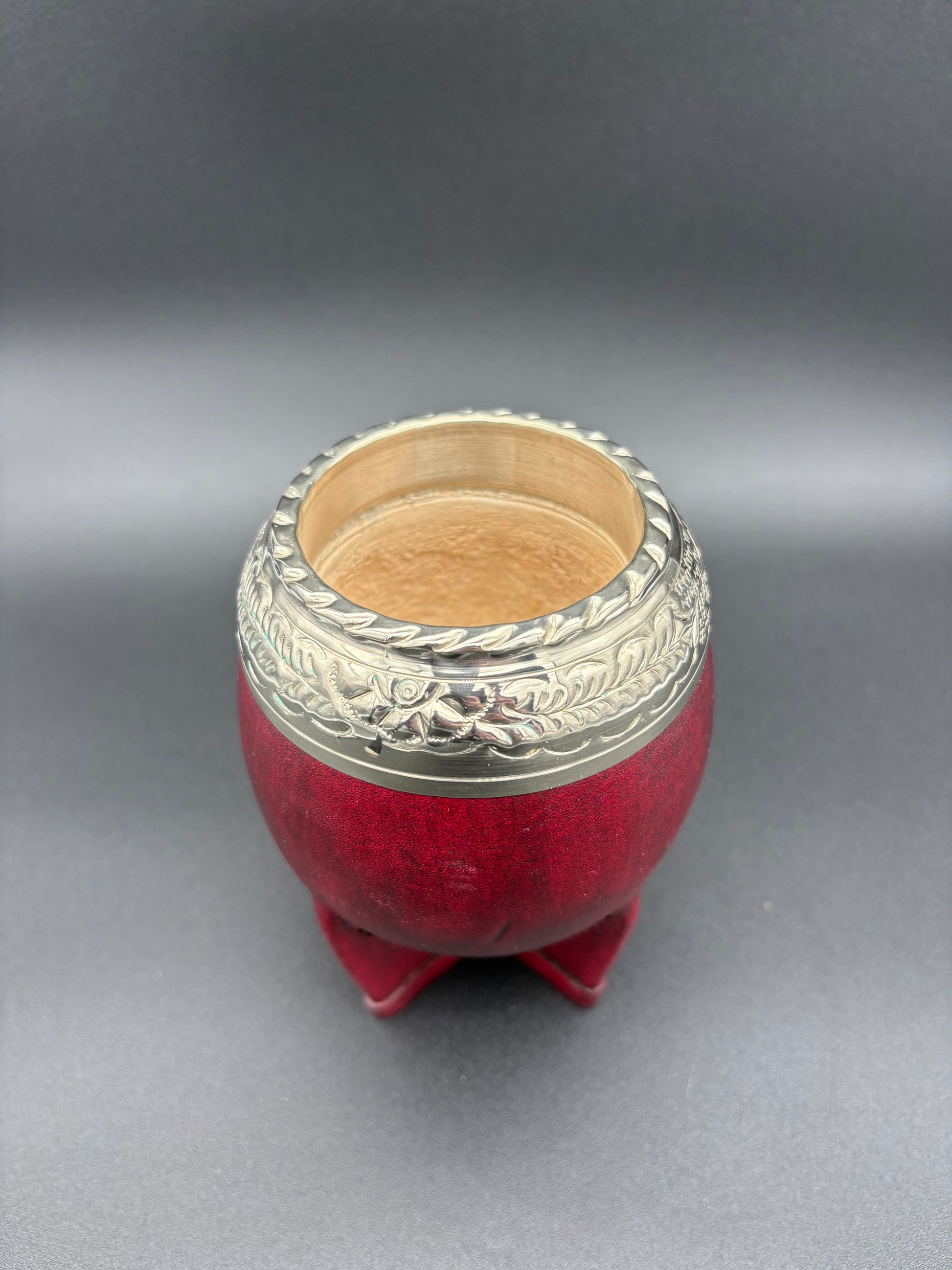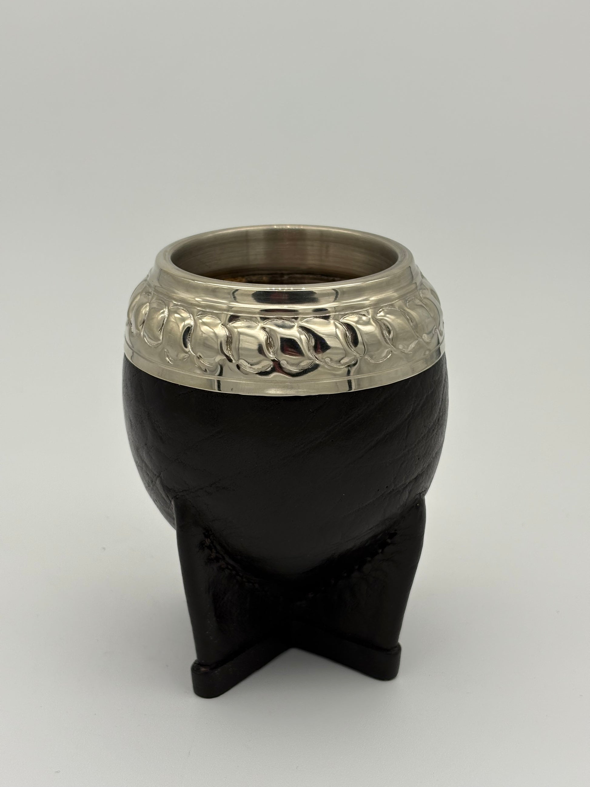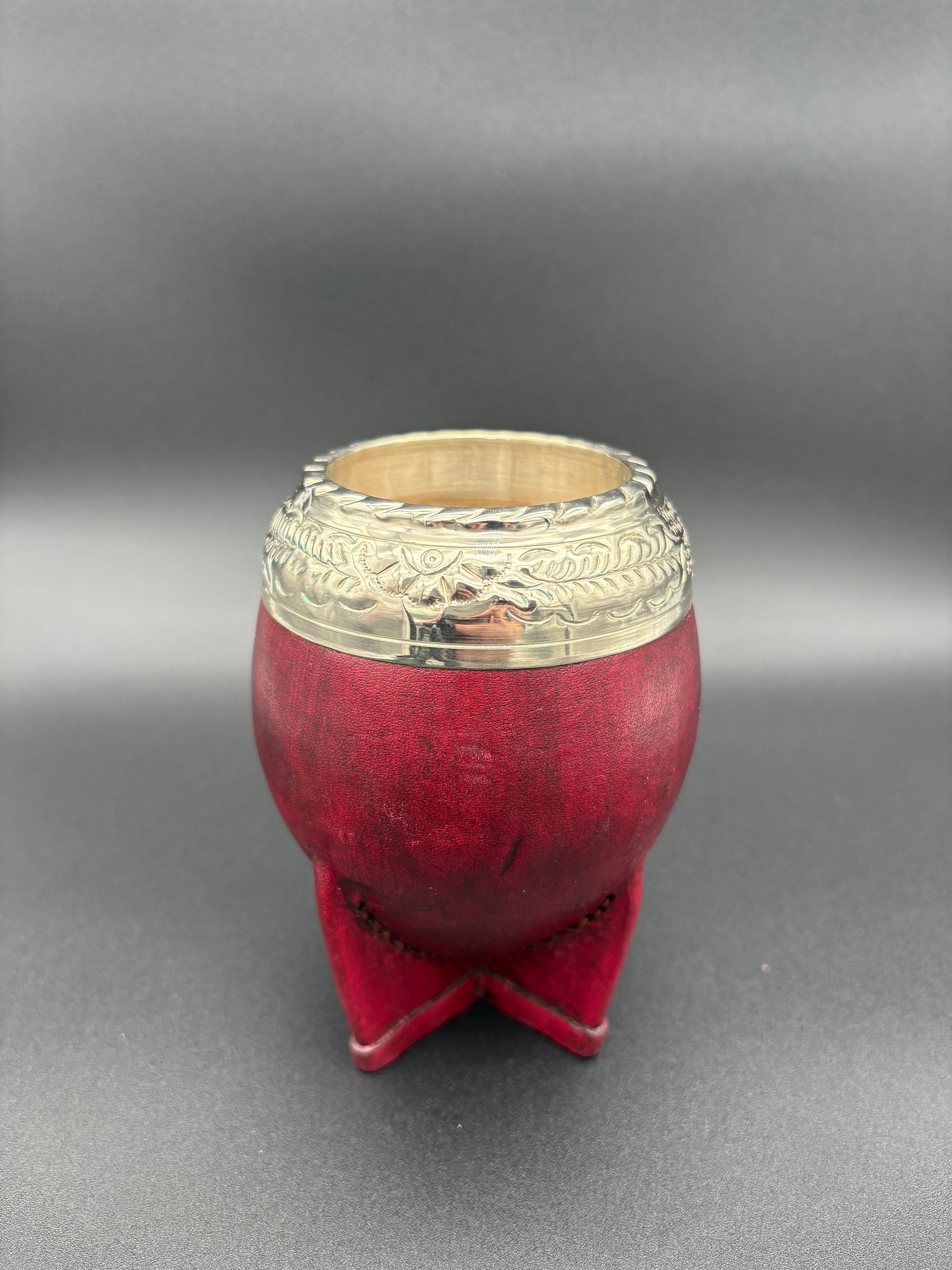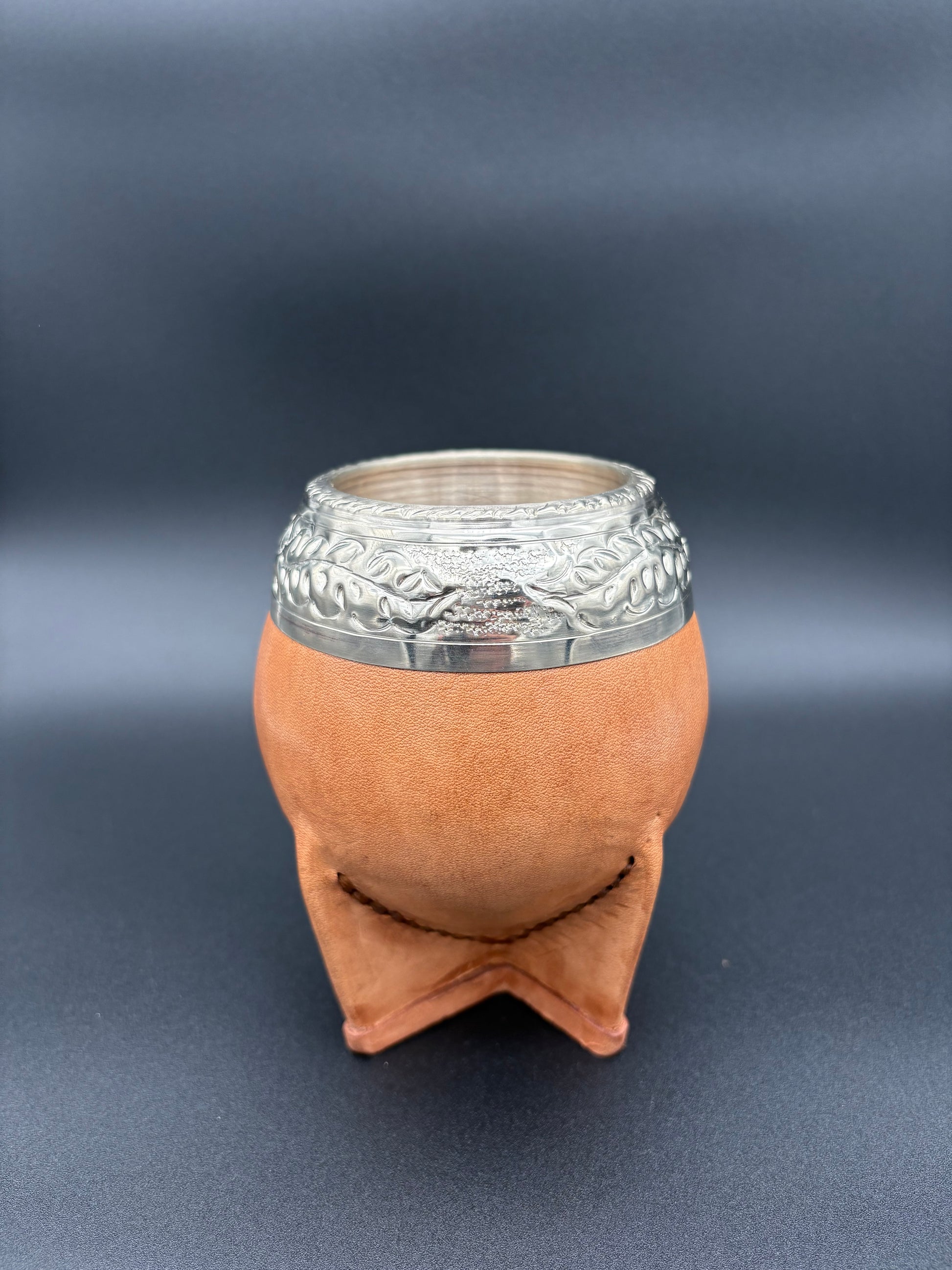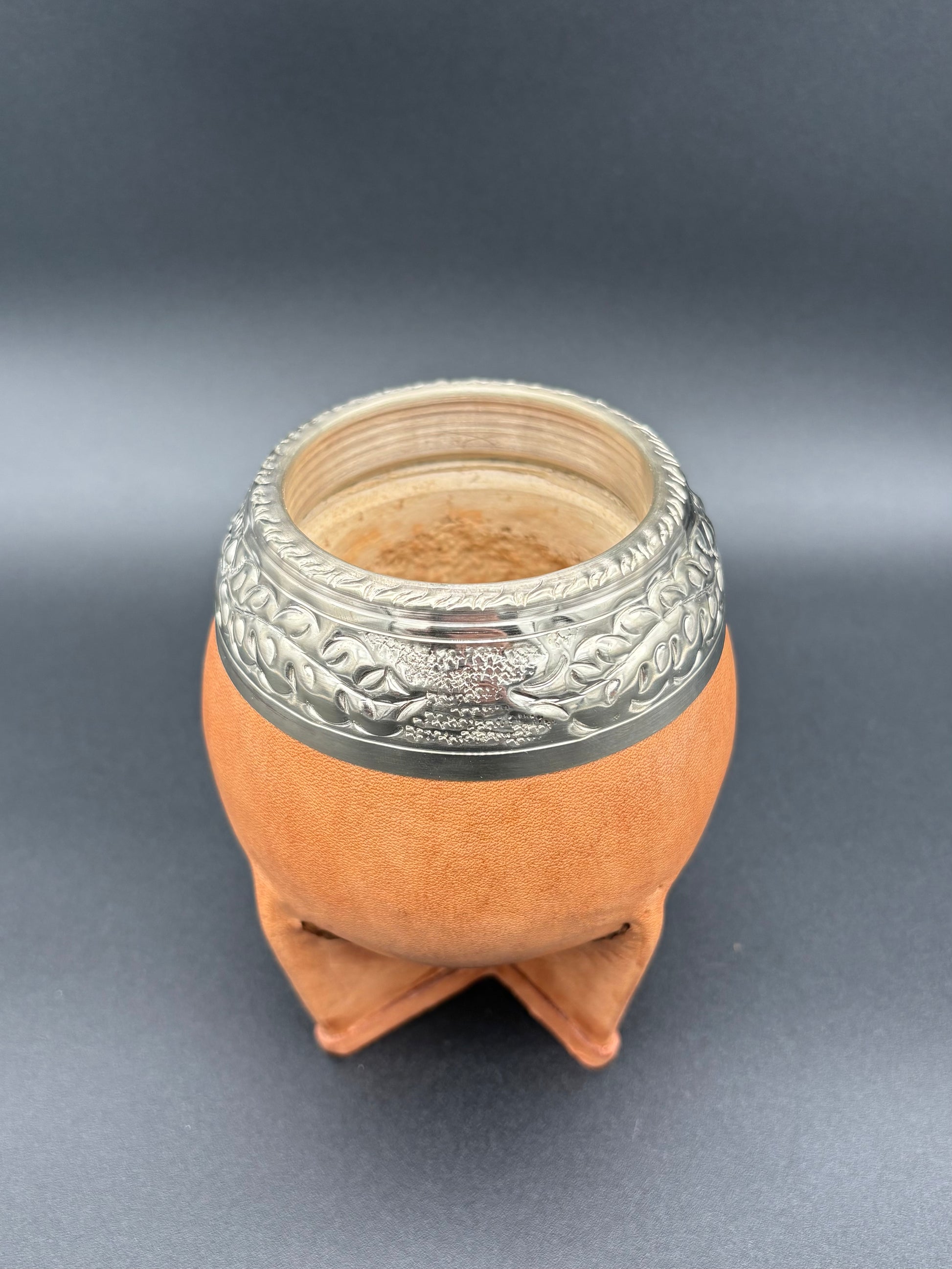 TORPEDO CON INTERIOR DE CALABAZA, CUERO GRUESO Y VIROLA ANCHA URUGUAYA CINCELADA AL LACRE.